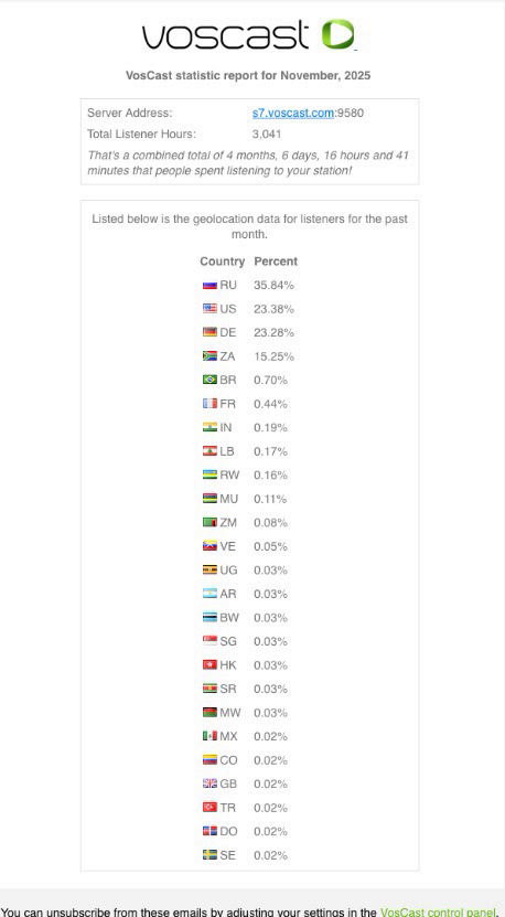 To our listeners all over the continent we would like to thank you for your support, may God continue to restore your hearts and souls.