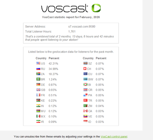 To our listeners all over the continent we would like to thank you for your support, may God continue to restore your hearts and souls.